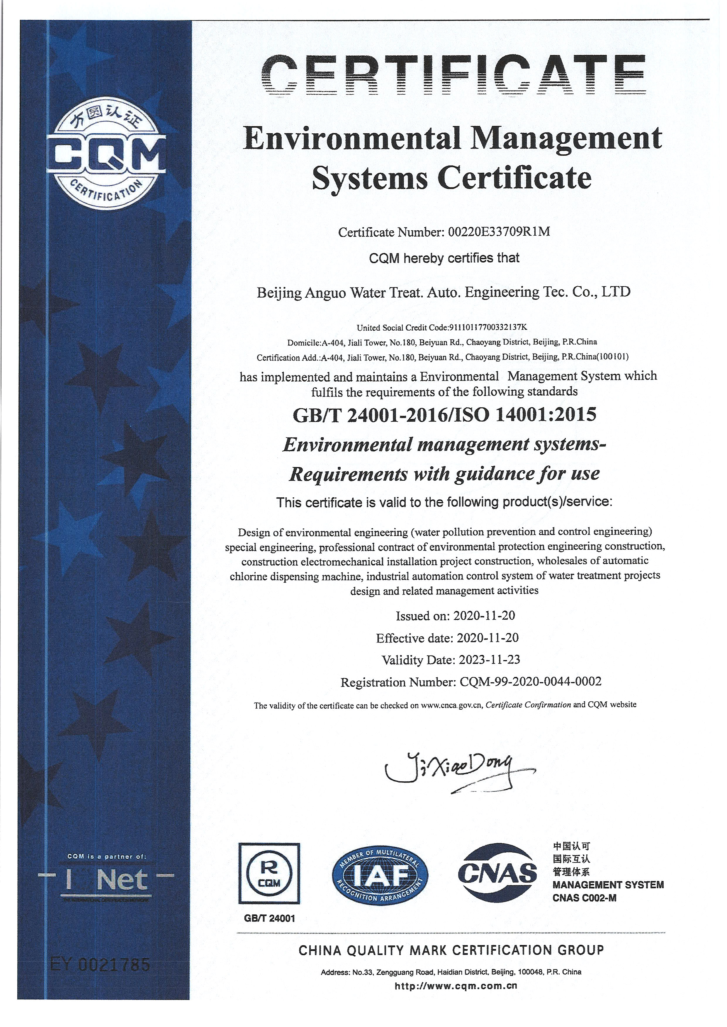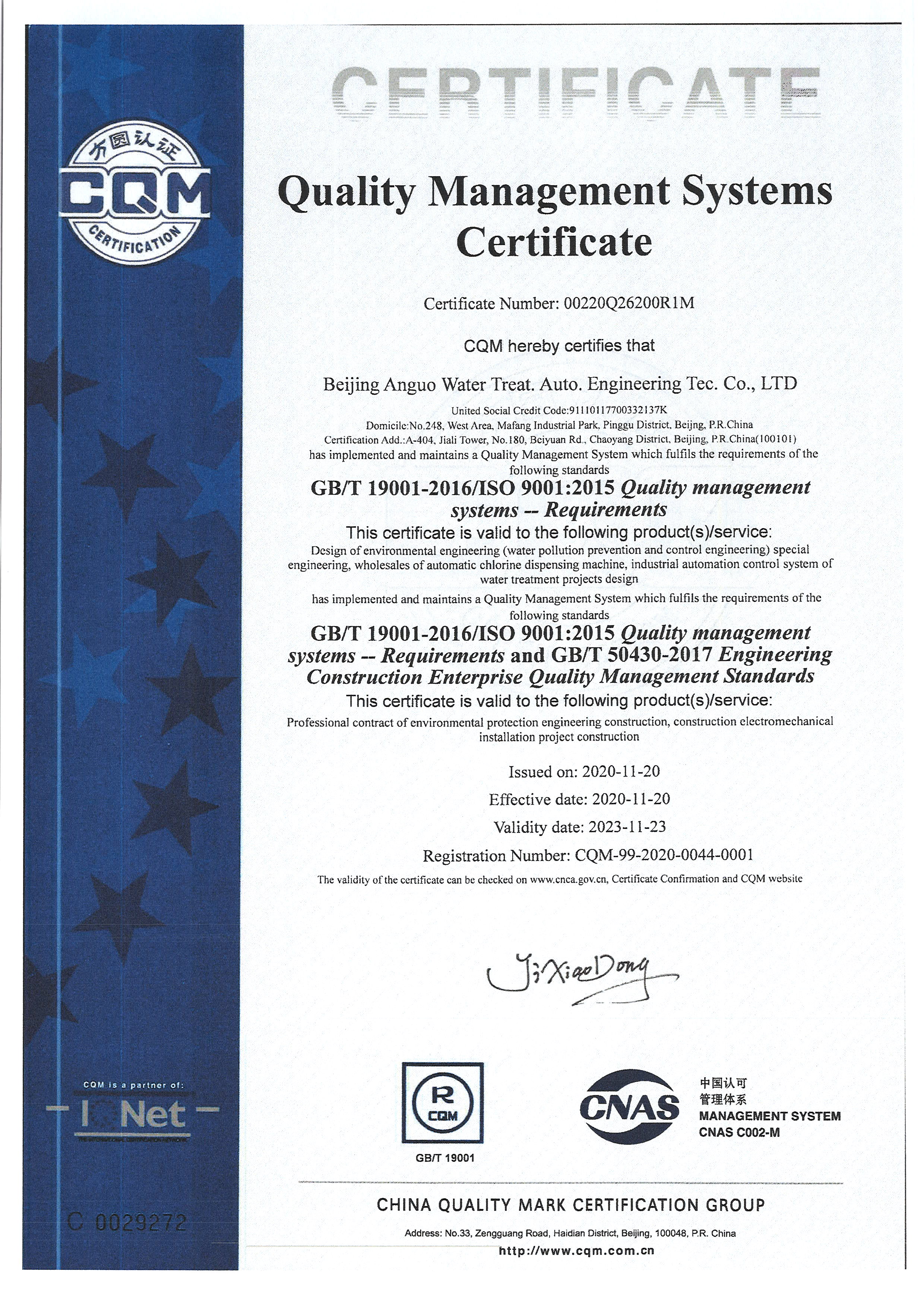 北京安國(guó)水道自控工程技術(shù)有限公司2015年入駐中國(guó)給水排水品牌委員會(huì)